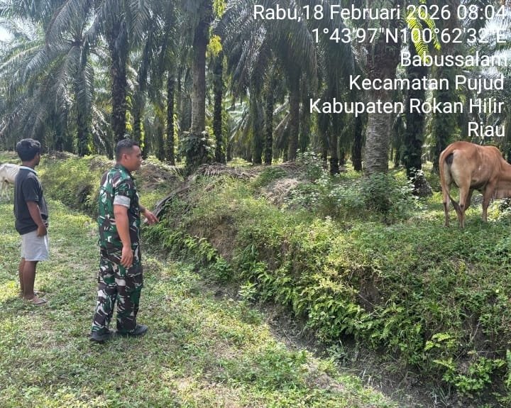 PMK Selalu Terdapat Pada Hewan Ternak, Personil Koramil 0321-06/TM Rohil Selalu Lakukan Pengecekan dan Pencegahan