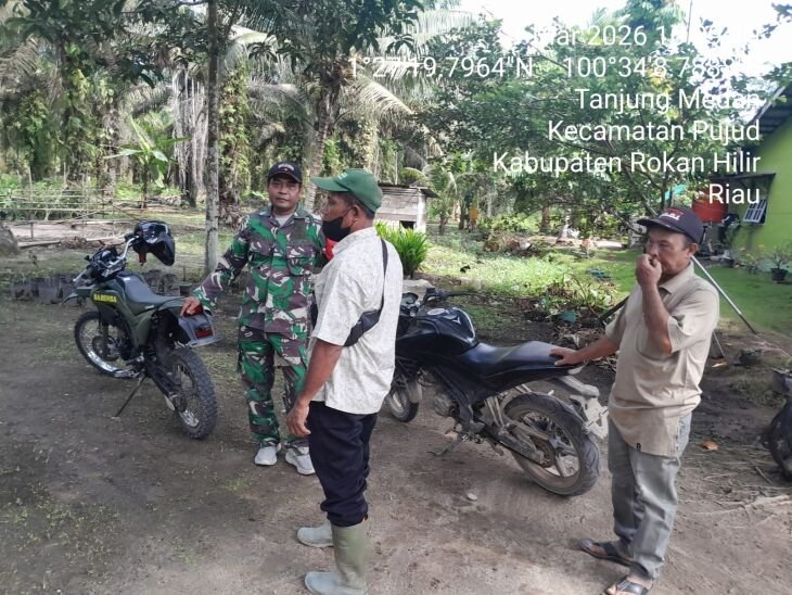 ILINE ROHIL, TANJUNG MEDAN-Babinsa Koramil 06/TM Kodim 0321/Rohil, Serda Purwanto, melaksanakan kegiatan Komunikasi Sosial (Komsos) Di kepenghuluan Tanjung medan Kecamatan Tanjung medan Kabupaten Rokan Hilir Riau. pada Minggu, (01/03/2026).