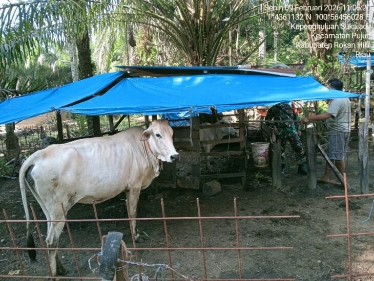 Dan kali ini personil Koramil 06/TM yang dipimpin oleh Koptu Joko Purwanto ternak sapi milik Bapak Alas Jalani warga Kepenghuluan Sukajadi kecamatan Pujud, Pada Senin (09/02/2026).