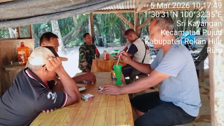 ILINE ROHIL, TANJUNG MEDAN-Babinsa Koramil 06/TM Kodim 0321/Rohil Sertu Suyetno, melaksanakan kegiatan komunikasi sosial (komsos) bersama masyarakat di Kepenghuluan Sri kayangan, Kecamatan Tanjung medan, Kabupaten Rokan Hilir Riau, pada Kamis (05/03/2026) sekitar pukul 09.00 WIB.