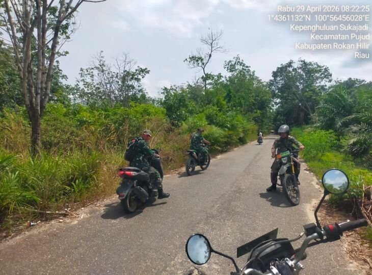 Dan untuk mengantisipasi hal tersebut, dua orang personel Koramil 06/TM Kodim 0321/Rohil yang dipimpin oleh Sertu Irfan Sipahutar dan empat anggota lainnya Beserta bersama warga masyarakat melaksanakan patroli kebakaran hutan dan lahan (karhutla) di desa binaannya.